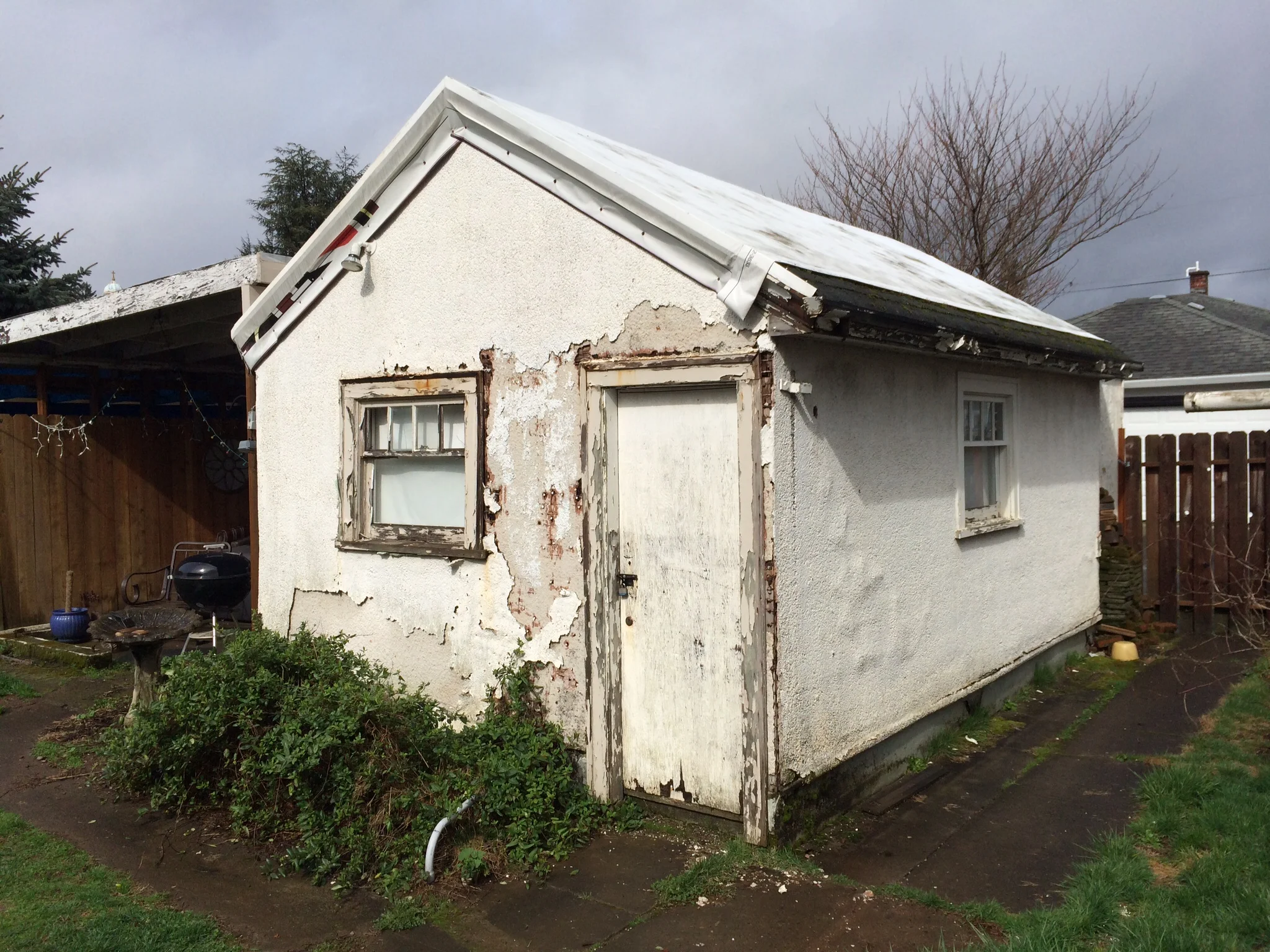 The client is a professional jazz drummer. Drummers need to drum, and that’s not the ideal scenario when sharing a small house in a residential neighborhood. The client needed a place at home where he could let loose without worrying about subjecting others to his decibel levels. Weary of playing electronic drums with headphones, we decided on a plan to demo his existing, dilapidated garage and build a new sound-proofed music studio in the backyard. The studio will provide a sanctuary and a place to play music at anytime without disturbing neighbors. A modest budget lent to experimentation with using industrial materials in a residential context. Expected build summer 2014.